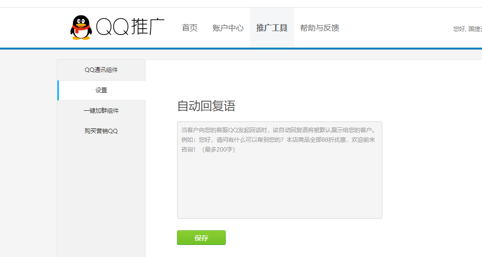 2、然后点击设置,对在线对话功能进行设置。首先可以设置自动回复功能,这样别人点击你的时候,会首先发送一条消息给别人。可以介绍你的产品呀,欢迎词等等。